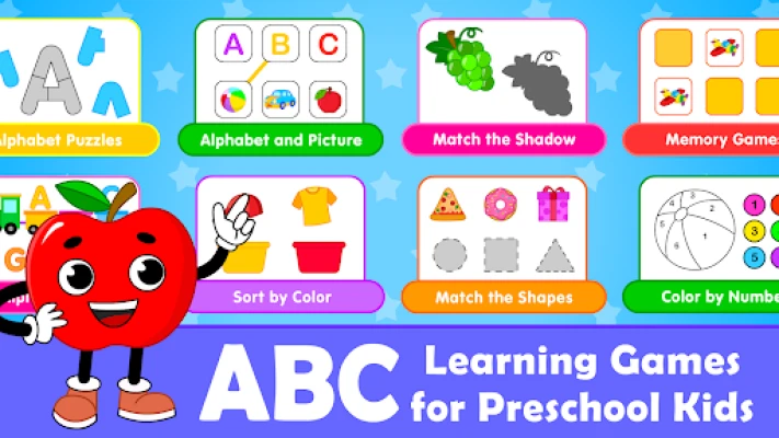 Are you looking for fun educational games for your toddler to teach them ABC alphabets, colors and shapes? ABC Preschool Games is just the right choice for you. "ABC Preschool Games for Kids" has lots of educational activities and games for kids of age 2+. It is designed specially for toddlers & preschool kids to help them learn ABC, Shapes, Colors etc. with fun learning activities and games.