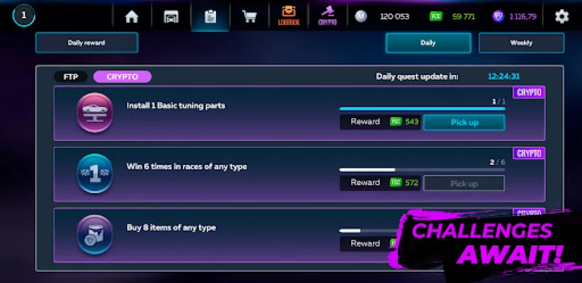 Play daily and hone your driving skills across the various racing modes. Unlock unique rewards with your skills and become a cyberathlete!