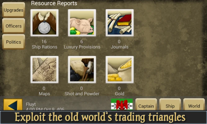 - Buy, sell, and battle over 30 unique classes of sailing ships