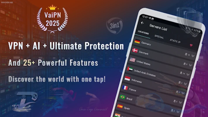 One app combining: VPN + Artificial Intelligence (AI) + Advanced Security with 28+ features.