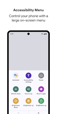 • Accessibility Menu: Use this large on-screen menu to lock your phone, control volume and brightness, take screenshots, and more.