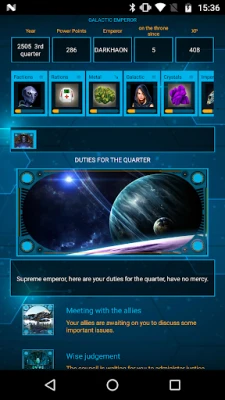 A space strategy RPG game where YOU play the role of an evil emperor of the galaxy!