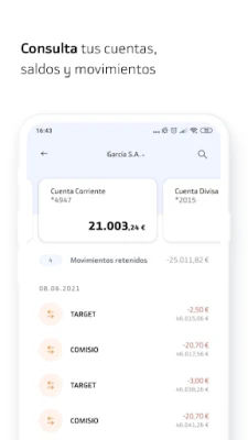 Además de sus cuentas, tendrá acceso a consultar sus posiciones y líneas de cobros y pagos, líneas de financiación, inversión o tarjetas. De esta manera, dispondrá de su posición global las 24 horas del día.