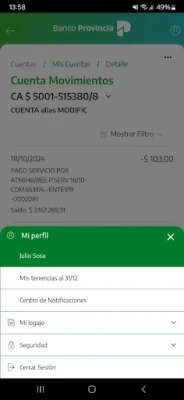 IMPORTANT: Your use of the Service constitutes acceptance of the terms and conditions published in www.bancoprovincia.com.ar