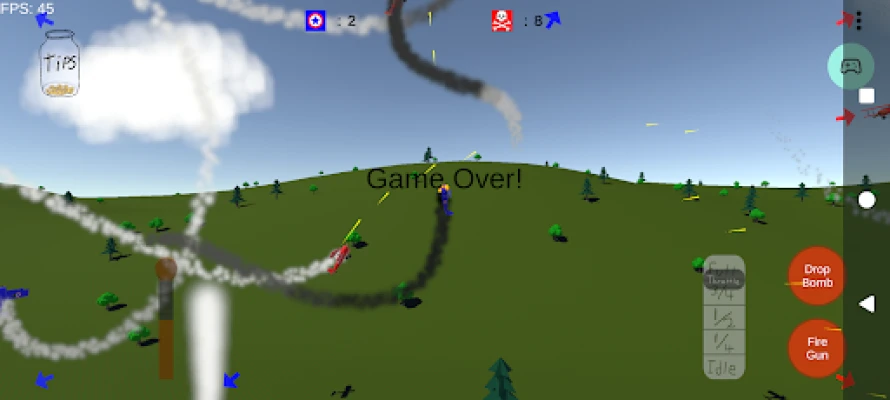 Stall, spin, and dive through the 2.5D chaos of Biplane Battle. Outmaneuver rival pilots to survive the gauntlet of aircraft and falling debris. Tear enemy planes apart with machine gun bursts and smash heavy armor with precision bombing runs from above. Clear the skies for bomber squadrons, open the path for advancing armor columns — all while evading relentless fire from deadly, ground based AA guns. Do you have what it takes to keep the sky blue?