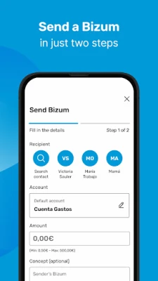 ✔️Send money for free via Bizum, directly from the CaixaBank app.