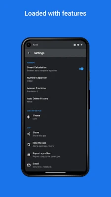 Calculator Plus also smartly corrects the equation. Calculator Plus is packed with better User Interface and better logic underneath to tackle all your day to day calculation needs. Calculator Plus also provides many other settings to play with, which allows you to take control of how the calculator behaves. Calculator Plus has precision settings, angle settings, number formatting settings etc. and many more to be added in the future updates.