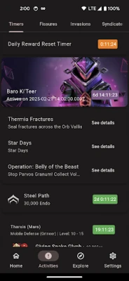 - Complete Fissure information (including Void Storms and Steel Path)