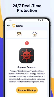 Certo AntiSpy is your all-in-one solution for mobile privacy and security. Whether it’s malicious spyware, intrusive apps, or insecure networks, Certo protects your device and personal data 24/7.