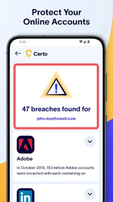 Billions of credentials are exposed in data leaks each year. Use Certo to find out if your accounts are compromised and protect yourself from identity theft and fraud.*