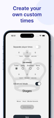 Customizable Timers: Create your ideal chess clock with features like increment time, Fisher, Bronstein, or Delay modes, and multi-stage timers.