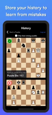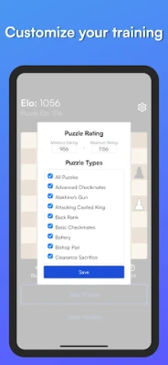 Chess Puzzles and Tactics. This app has puzzles and tactics for all players whether you're a beginner who just learned the rules or an advanced player. You can customize your puzzles and elo ratings to help you improve faster at your weak points.