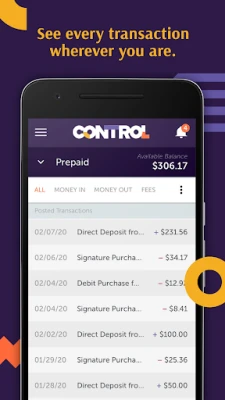 The Control™ Card Prepaid app lets you manage your account wherever you are, whenever you need it.