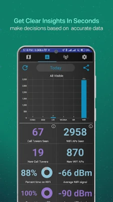 - Uses accurate WiFi and cell signal strength readings from your phone