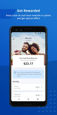 • Keep track of the cash back rewards or points you’ve earned with your card.