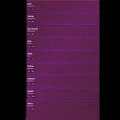 Spokeo, WhitePages, PeopleFinder, BeenVerified, Intelius, TruthFinder, Instant Checkmate, MyLife, PeekYou, Radaris, FastPeopleSearch, ThatsThem, PeopleSmart, Zabasearch, USSearch, Nuwber, FamilyTreeNow, NeighborWho, PublicRecordsNow, PrivateEye