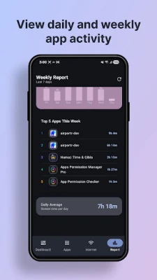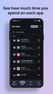 ✔ Per-app usage time with beautiful charts