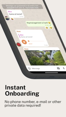 • Anonymous. Instant on-boarding without a phone number, e-mail or other private data.