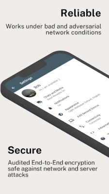 • Secure. Audited End-to-End encryption safe against network and server attacks.