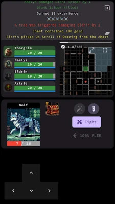 The game also supports accessibility features, including compatibility with TalkBack. It provides sound cues for actions, making the game more accessible to players with visual impairments. Additionally, important actions, such as monster encounters, are described, and players can hear a description of their surroundings in the four cardinal directions.