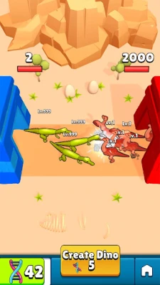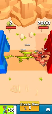 Combine dinosaur parts to create your unique dinosaur and join thrilling battles. Earn money from victories to buy upgraded parts and enhance your dinosaur's health, damage, and speed. New parts bring more power, and upgrades boost your DNA refill rate. Get ready to build, battle, and dominate!