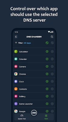 ✔ Control over which app should use the Selected DNS Server (Pro)