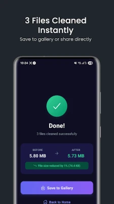 • Save cleaned photos to gallery or share directly