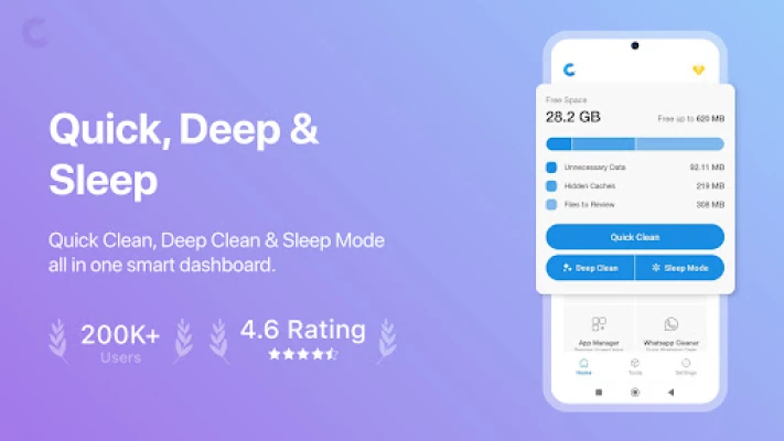 Clean junk files, app cache, temp data and residual files instantly. Free up space and keep your phone light, clean and clutter free with one tap.