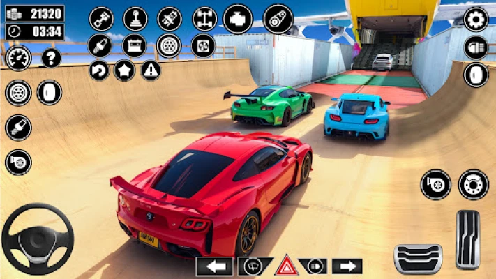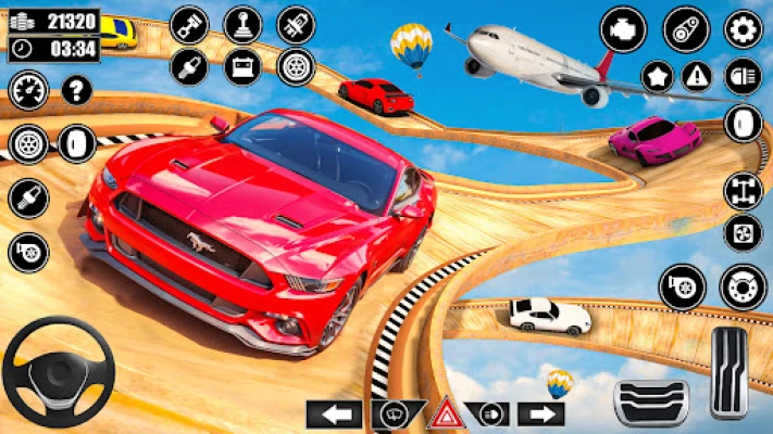 ☂ Top levels with vertical and horizontal ramps. ☂ Best Racing cars including formula cars and sport racing cars also modern cars. ☂ Different Stunts in mega ramping extreme. ☂ Time Mode from crazy stunt game