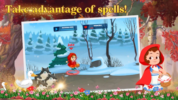 With your favorite childhood characters, explore the magical realm of fairy tales. An infinite runner, complete with realistic sounds and high-quality graphics. Touch on the screen to jump, avoid obstacles and collect stars!
