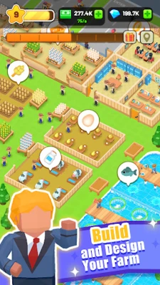 Click, tap, and upgrade your buildings to earn cash. Hire workers to help manage your business. Tend your farmer's team and sell your goods to the farmer's market for profit!