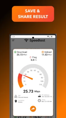 With just one tap, it will test your internet connection through thousands of servers worldwide and show accurate results within a few seconds.