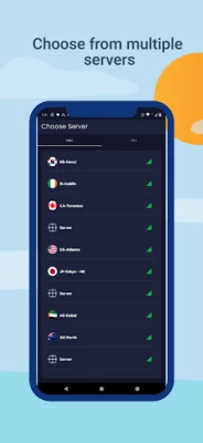 We have built a global VPN network included America, Europe and Asia, and we are planning to add more networks with your support. All servers are free to use in our app, you can click the change server button and change server as any times as you want and whenever you want there is no restriction in our Fast VPN app.