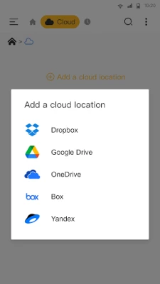 ● Cloud / Remote : You can access your cloud storage and also remote/shared storage like NAS and FTP server. (Cloud storage: Google Drive™, OneDrive, Dropbox, Box, and Yandex)