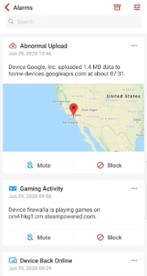 The Firewalla app is used to manage the hardware-based Firewalla devices. Key features and services include: