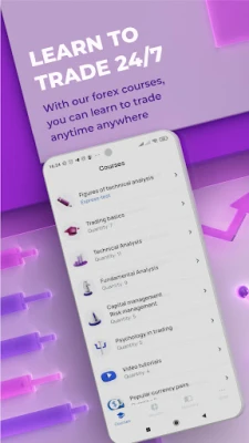 The Forex Courses app is a comprehensive training program that covers all the essential aspects of Forex trading. The course is divided into seven main sections, including Forex trading basics, capital and risk management, Forex technical analysis, Forex fundamental analysis, trading psychology, popular currency pairs, and trading platforms and stock indicators. Each section is designed to help you develop the skills you need to succeed in Forex trading.