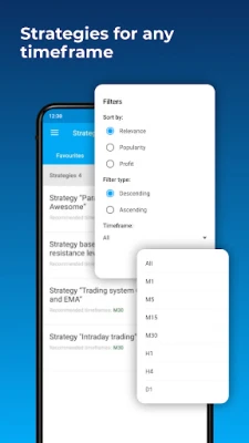 This application gives you access to all trading strategies, which have been developed by the experts and can be used by the traders, having various experience levels and using different currency pairs. These are the strategies, which fit every taste!