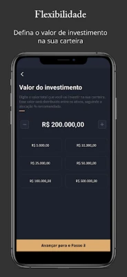 Selecione uma das carteiras simuladas, defina os preços dos ativos e acompanhe o valor a rentabilidade delas graficamente.