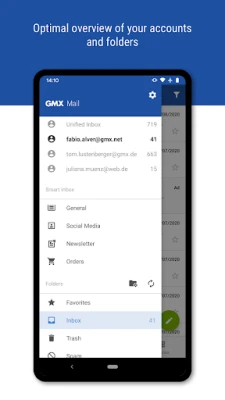Just as everyone lives a different lifestyle, we understand everyone has different expectations and requirements from an email client. With this in mind, we have made our app customizable to suit all tastes and needs. Whether you'd like to set custom alerts for emails, enjoy a more low-key mail experience with a vibration notification, or change the way emails are presented to you, GMX Mail enables you to do this and more.