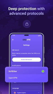 ✅ All types of data protocols. Gnu VPN works with PPTP VPN, OpenVPN, WireGuard VPN , SoftEther fast VPN, SSTP, IPsec IKEv2/IPsec, L2TP/IPsec.