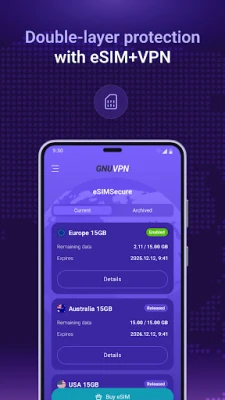 Experience secure and private Internet access with vpn service GnuVPN and esim for double security. Protect your personal data, unblock restricted websites. Download our VPN now and unlock the power of a premium VPN and proxy for your digital freedom!