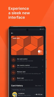 - Card control which allows you block your card payments by channel or by country