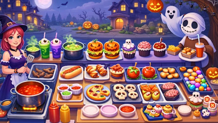🎃 In this free and offline cooking game, you’ll manage scary restaurants and serve Halloween-themed food to ghostly customers. Cook, dash, and decorate across 25+ restaurants with thrilling challenges and unique recipes like spooky chocolate cakes, haunted waffles, witch burgers, and monster soups.