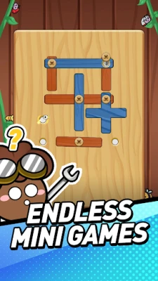 Unscrew the Wooden Bar: Slide, rotate, and sequence screws to free a wooden bar—quick, satisfying brain-teaser.
