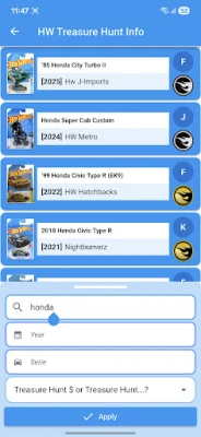No internet? No problem! This app works 100% offline and gives you instant access to detailed information about Super Treasure Hunts and Treasure Hunts — sorted by year, lot, and type.