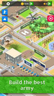 Become an army general and profit from your troops by managing your army base game like a tycoon. It’s a rollercoaster ride - no need to tap and tap or click and click - just invest, train your troops and win wars.