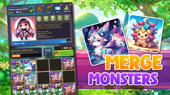 Idle Monster Tamer is an idle game where you collect and merge tons of monsters to level up your monster tamer. Compete in multiplayer rankings and create or join a guild.