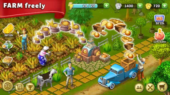 Jane's Farm is a huge farming empire! A real, unique farm simulator for the whole family and players! Build a farm city and upgrade your skills! Mobile game application in the world of farmers and builders! Jane's Farm Simulator game is a real Klondike among mobile farm construction games! A real, golden, green farm in your mobile phone or tablet! Play with your friends and the whole family. Join alliances and achieve incredible heights! Jane's Farm is a family farm, your family island of farming adventures. Your family farm! Family farm adventure starts now! Family farm adventure island! Farm game where players can compete with each other and participate in world tournaments. Casual simulator of a real farm all over the world! Farming family island for your mobile device. Family farm adventure with animals and plants.