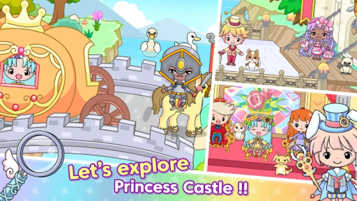Inside the princess' castle, you'll find lots of activities to do, whether it's exploring the castle, solving puzzles, hunting treasure, or dressing up the princess. Make up and go out on a date with the prince, then cook delicious food and drinks. Come to a party at the private pool or enjoy with lots of cute pets, including cats, dogs, horses, and go in search of the little unicorn in the mysterious land. All in all, you can choose to play freely. There are no rules; anything is possible in this land, depending on your imagination.