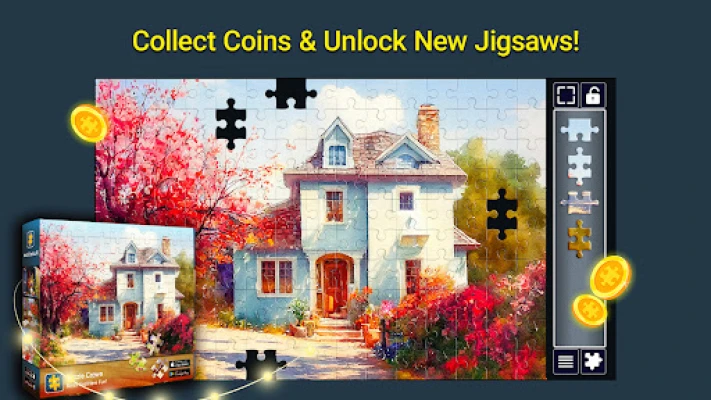 - Coin System. Collect coins by completing jigsaw puzzles and pend them to unlock more puzzles!